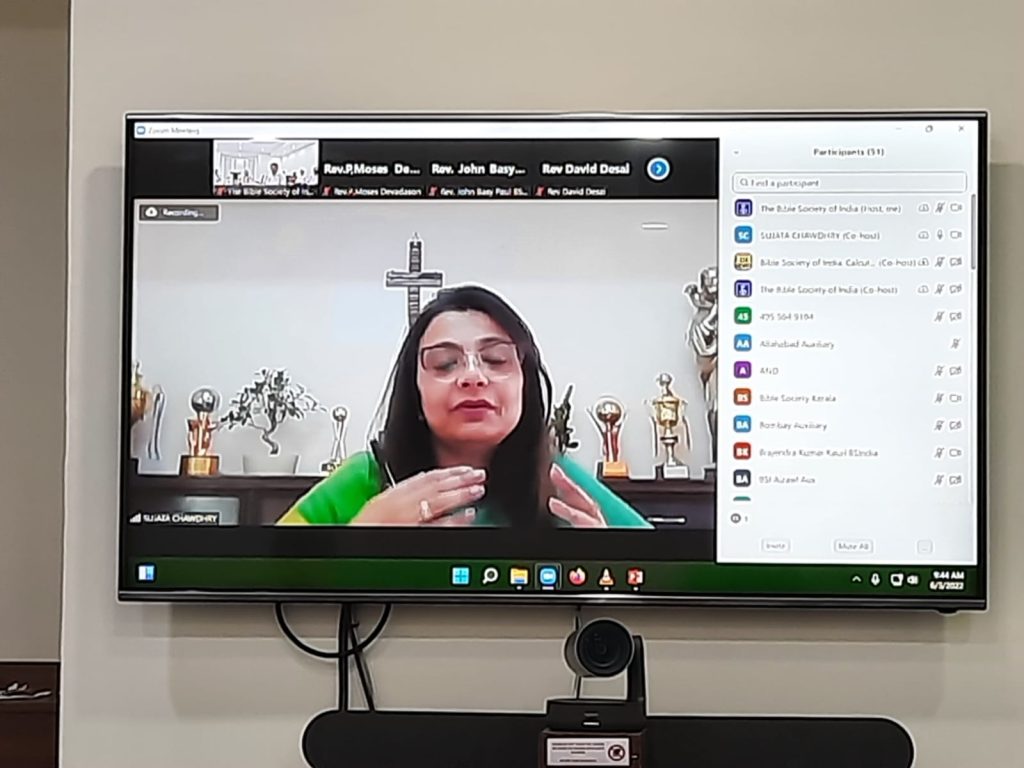 The family of the Bible Society of India observed World Environment Day on June 3, 2022 with prayer through the Zoom platform virtually across the country. The Guest Speaker for the day was Mrs. Sujata Chawdhry, Treasurer, North West India Auxiliary, Principal, St. Crispin’s SR. SEC. School (Diocese of Delhi, Church of North India), Gurugram, Haryana. Mrs. Sujata had taken us through the biblical teachings on creation and human responsibilities by bringing up basics and important issues, such as, the way to respond to the climate change and global warming, wherein, human beings are responsible to a very large extent. The highlights of her speech are as follows:-