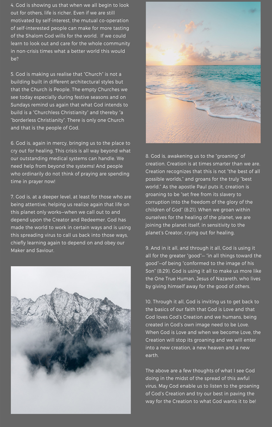 CORONAVIRUS AND THE GROANING OF CREATION
